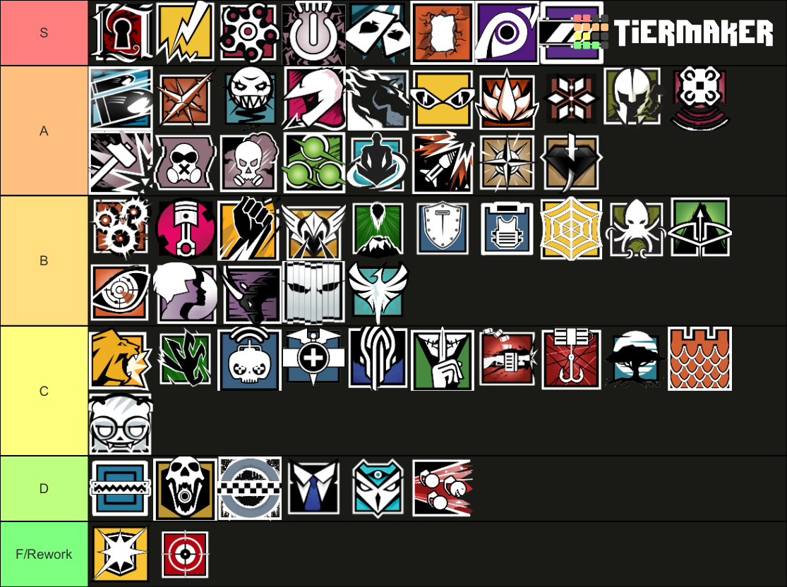 Siege Operator Tier List As Of 10th Of August 2021 Y6s2 After Zofia Recoil Nerf From The Opinion Of A Frequent Low Plat Player Playing Since Blood Orchid R Rainbow6